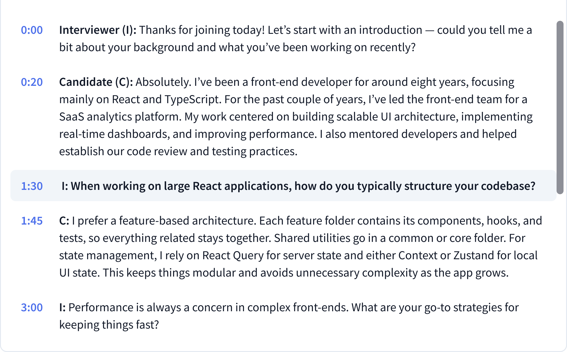 Sharpen your interview question and answer skills with Rezi AI Interview. Job-tailored questions, focused on your resume.