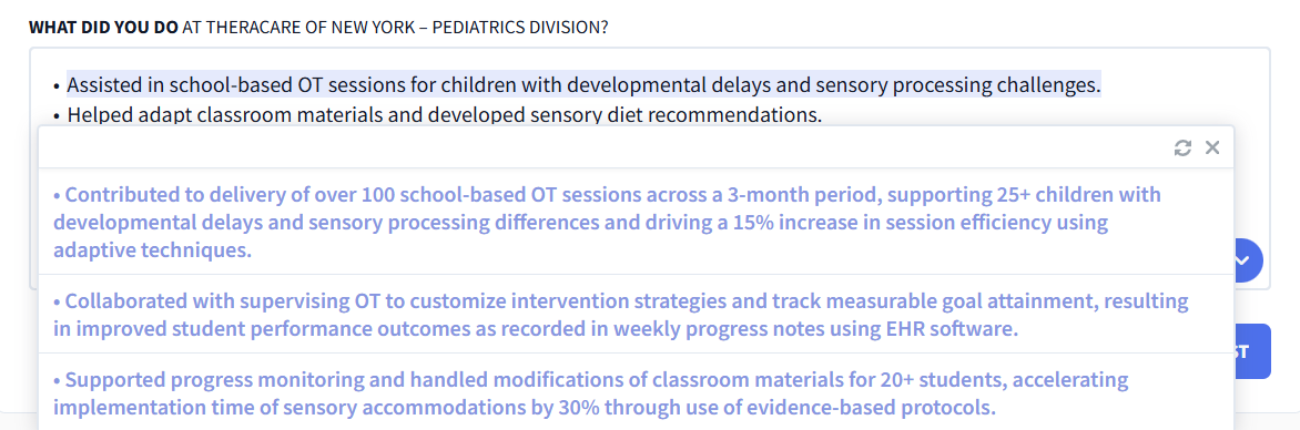 Need stronger bullet points? Use our AI Bullet Point Writer to create new ones from scratch, or try the AI Bullet Point Editor to improve what you already have.
