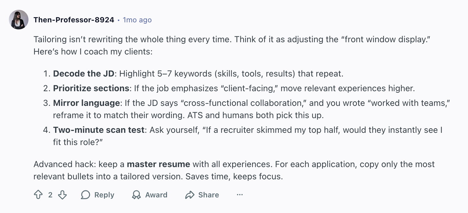 - Tailor applications: Focus on quality over quantity by customizing your resume and cover letter for each role.