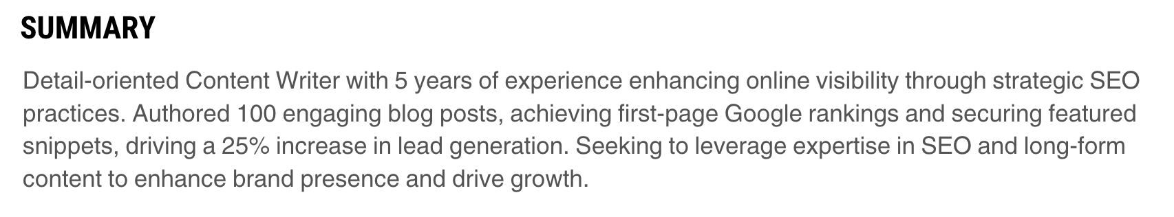 You’d probably get stronger results by pasting your content into ChatGPT or by using a resume builder that’s actually designed around resume writing instead of general content editing.