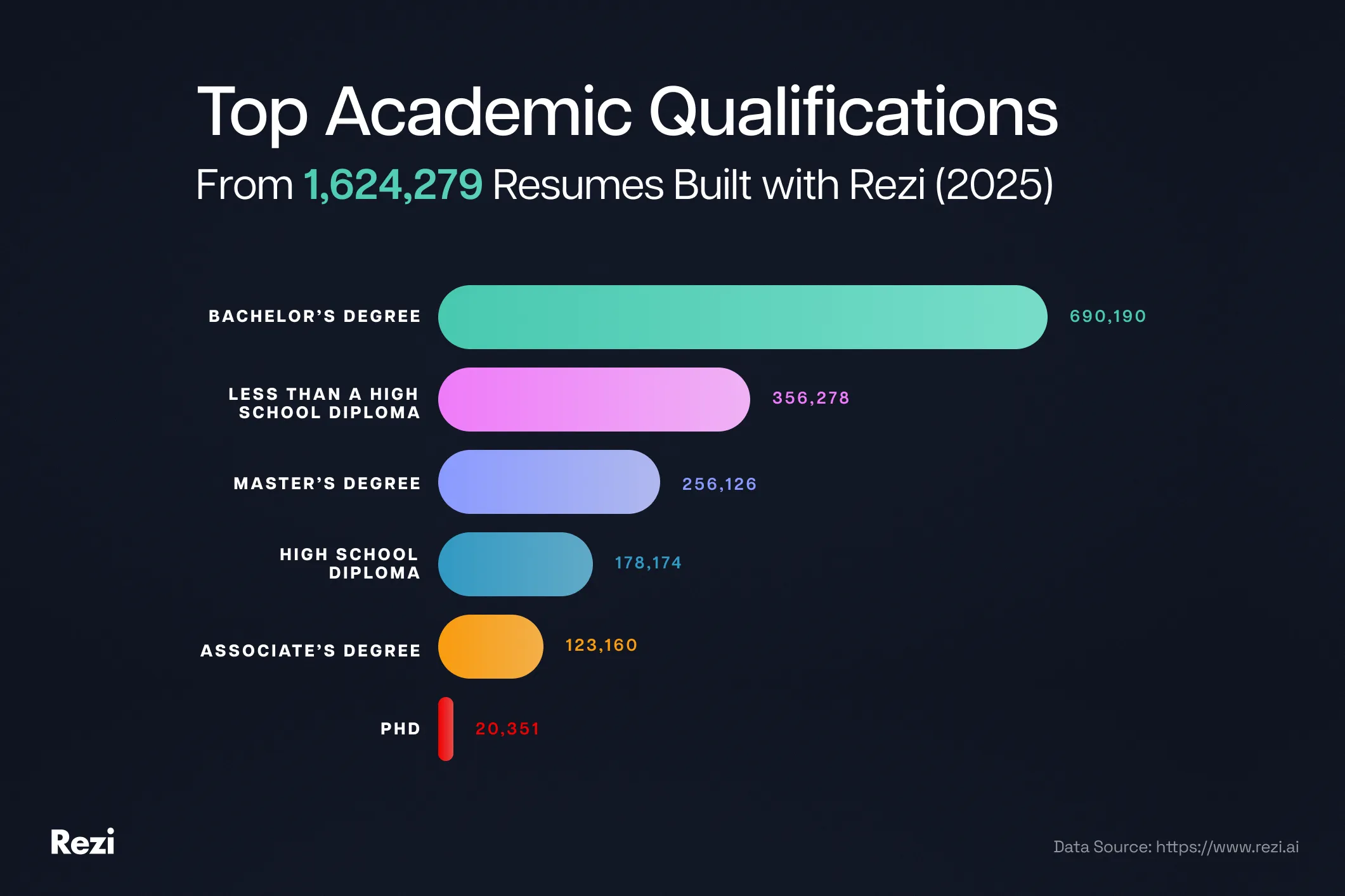 To dig deeper, I teamed up with our data team to analyze over 1.6 million resumes built with Rezi. In our analysis, we found that more than 75% included at least a high school diploma.