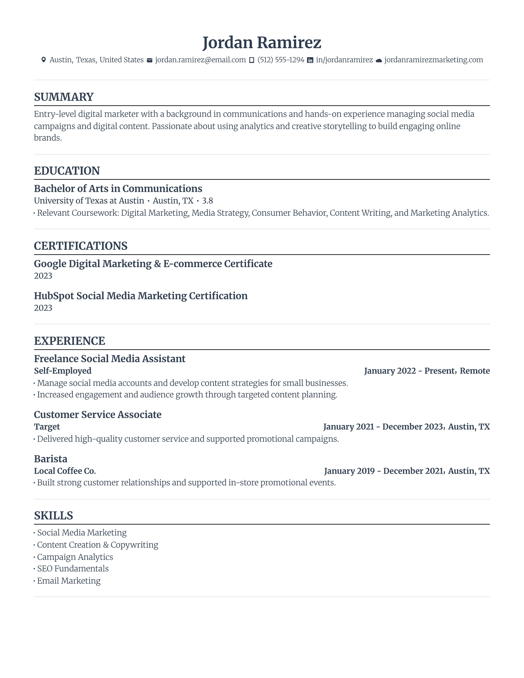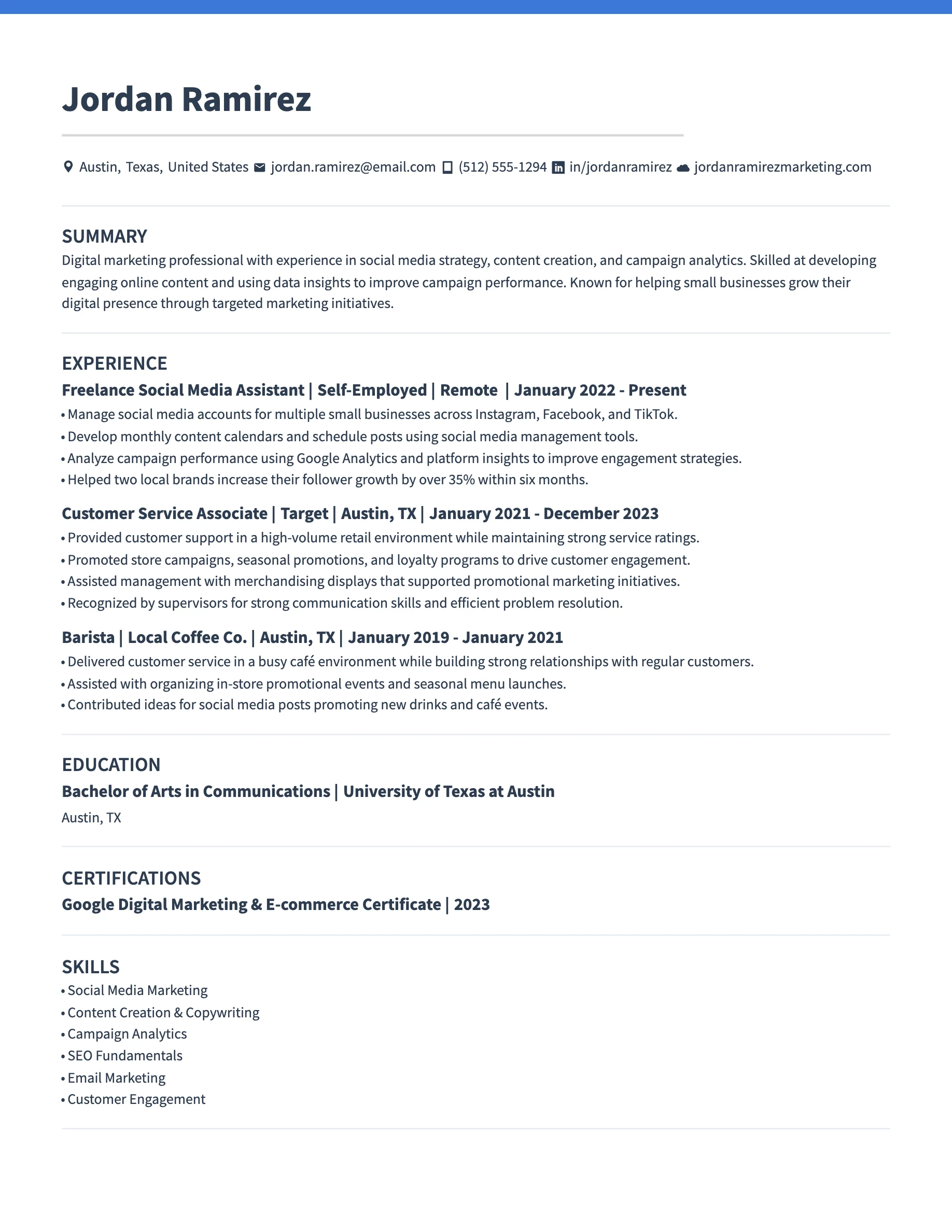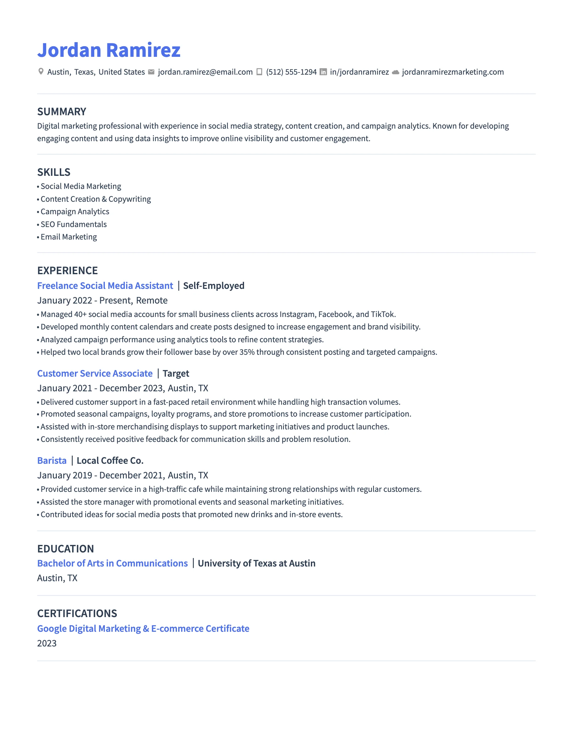- Portfolio or website (optional): Especially useful for creative or technical roles.
