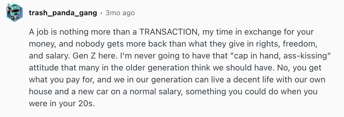 A Redditor summed up this attitude: