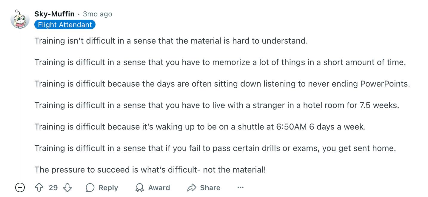Here’s what a flight attendant said when asked about the difficulty of training:
