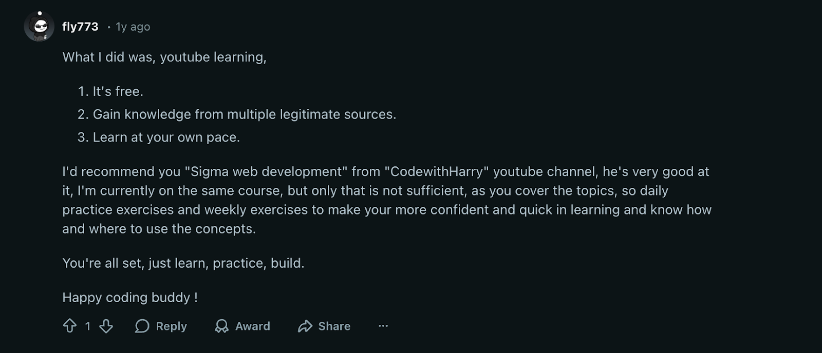 Here was one Reddit user’s advice for beginners that want to get into web development: