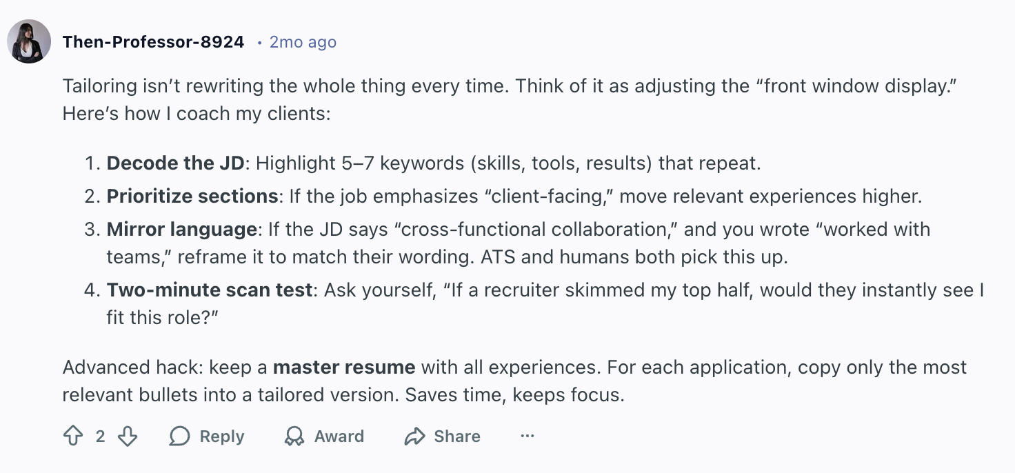 Yes, tailoring your resume to each job sounds like effort, but it dramatically increases your chances of getting noticed because it aligns your skills with the company’s priorities. Recruiters know what to scan for, so make it easy for them to check off those boxes.