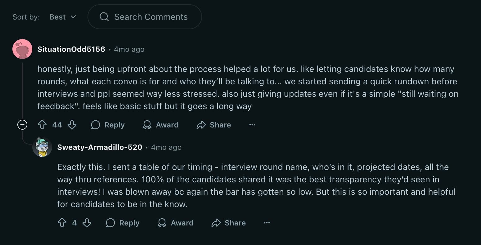 One user on this Reddit thread about improving the candidate experience put it nicely: