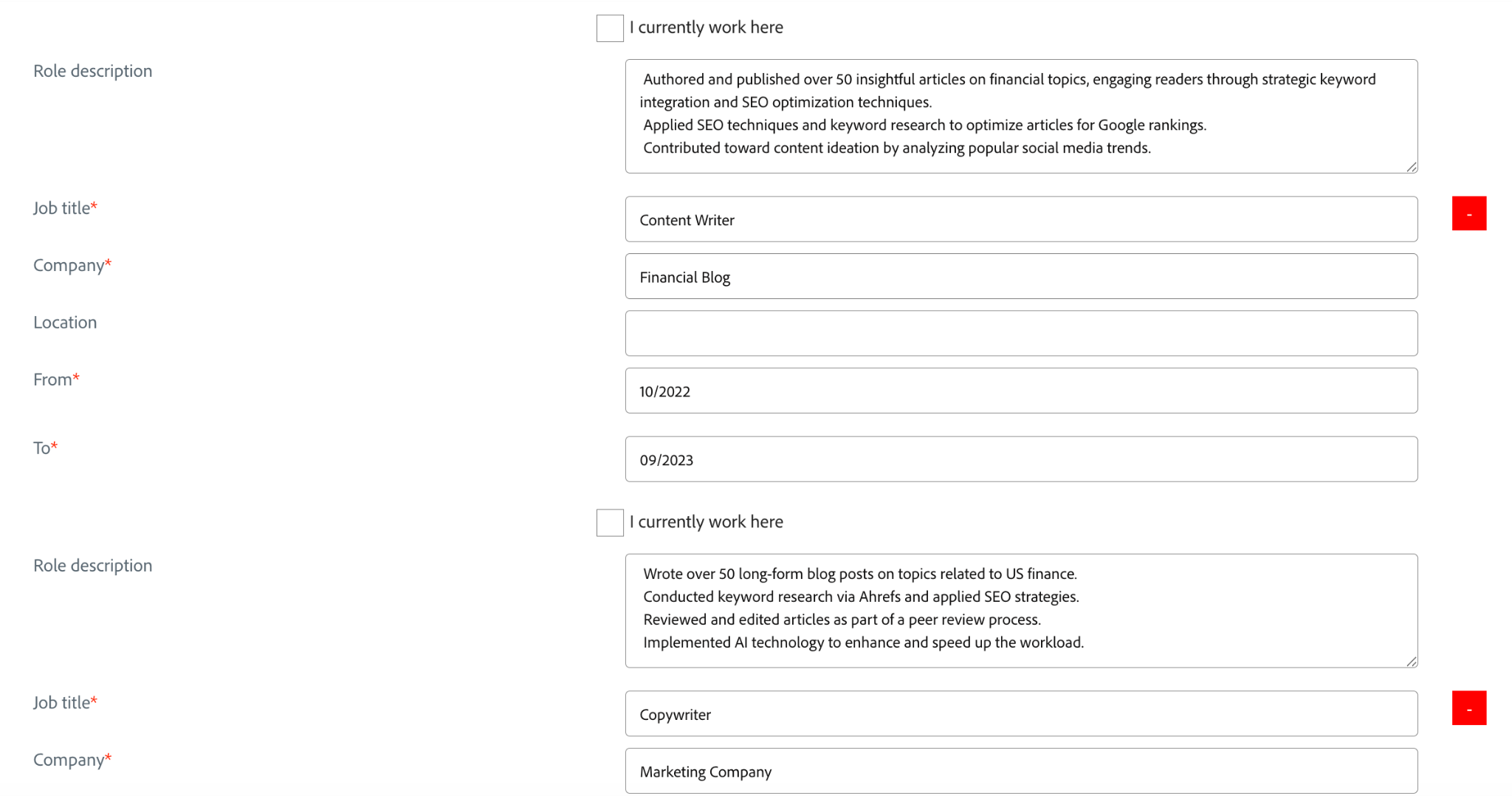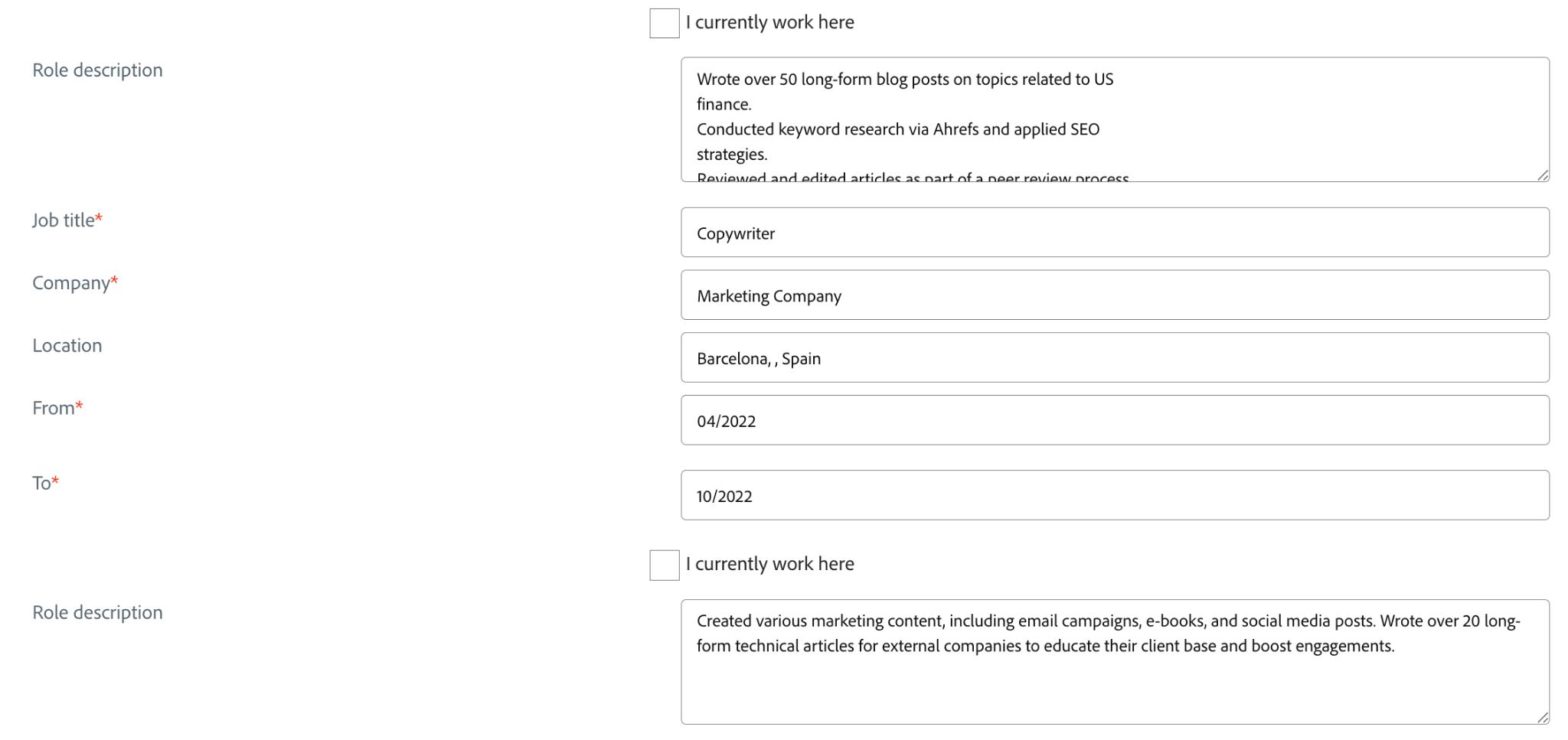 That said, the Adobe application using the Workday ATS worked much better, copying all the details, minus any awkward gaps.