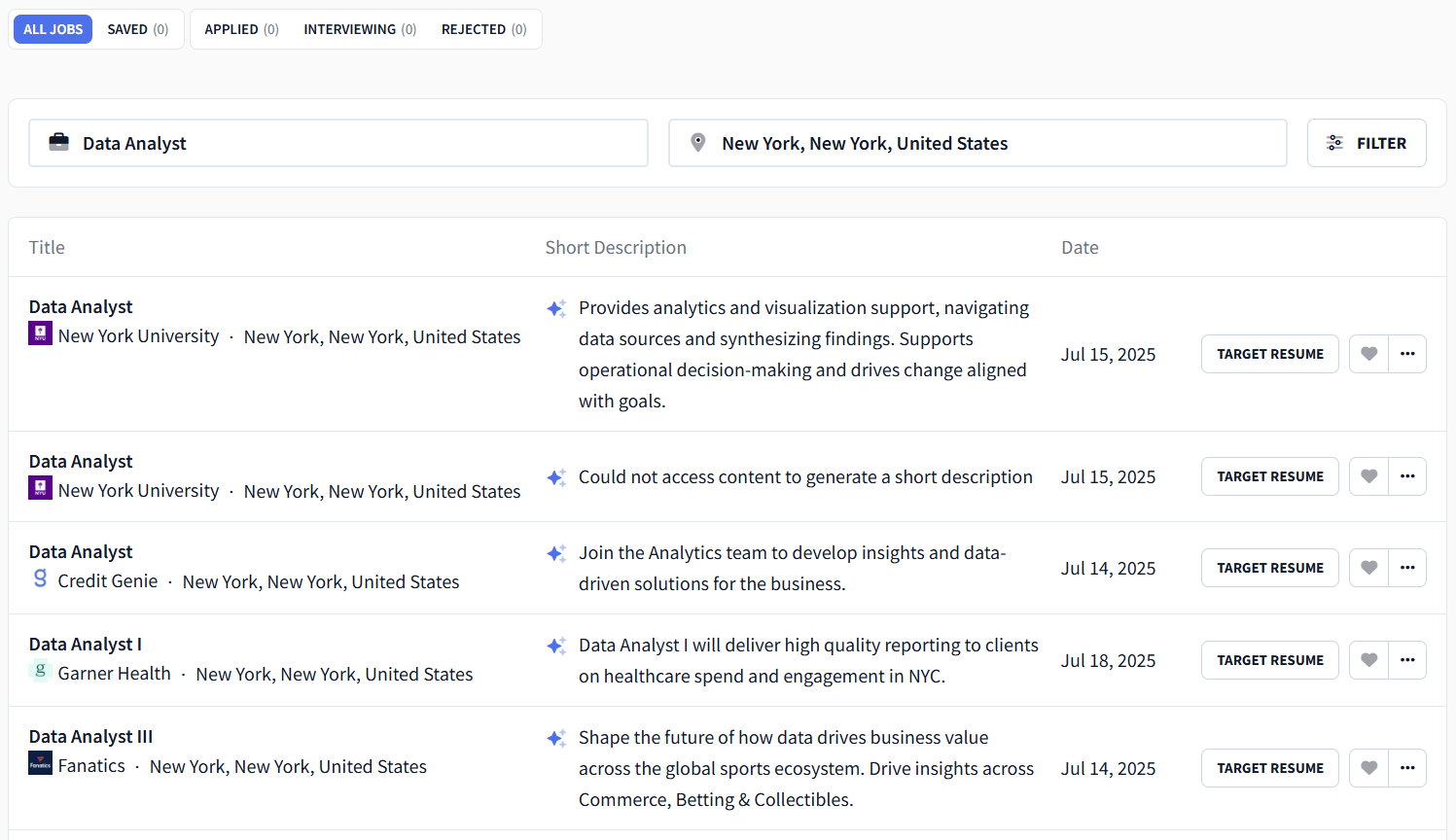 And if you’re tired of digging through ghost jobs on LinkedIn or competing with thousands of other applicants, try out our AI Job Search. Just enter your desired job title and location, and it’ll pull up real, recently posted roles you can apply to using your tailored resume.