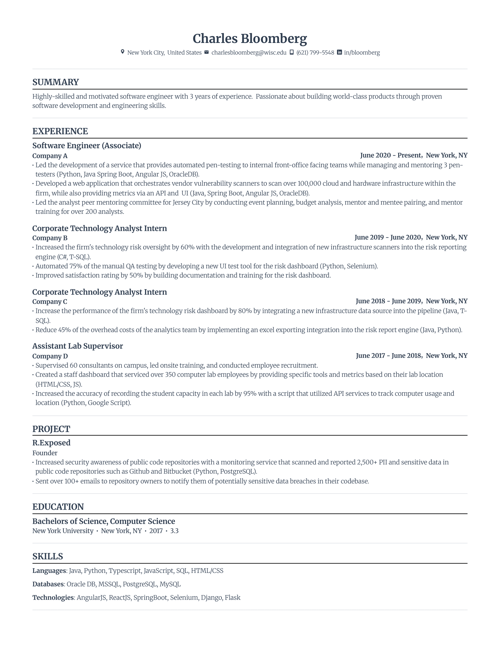 - Clean formatting. The resume template is ATS-compliant. Keep your layout and design minimal and professional. This is often the biggest reason why most resumes don’t make it past the first stage of the hiring process.
