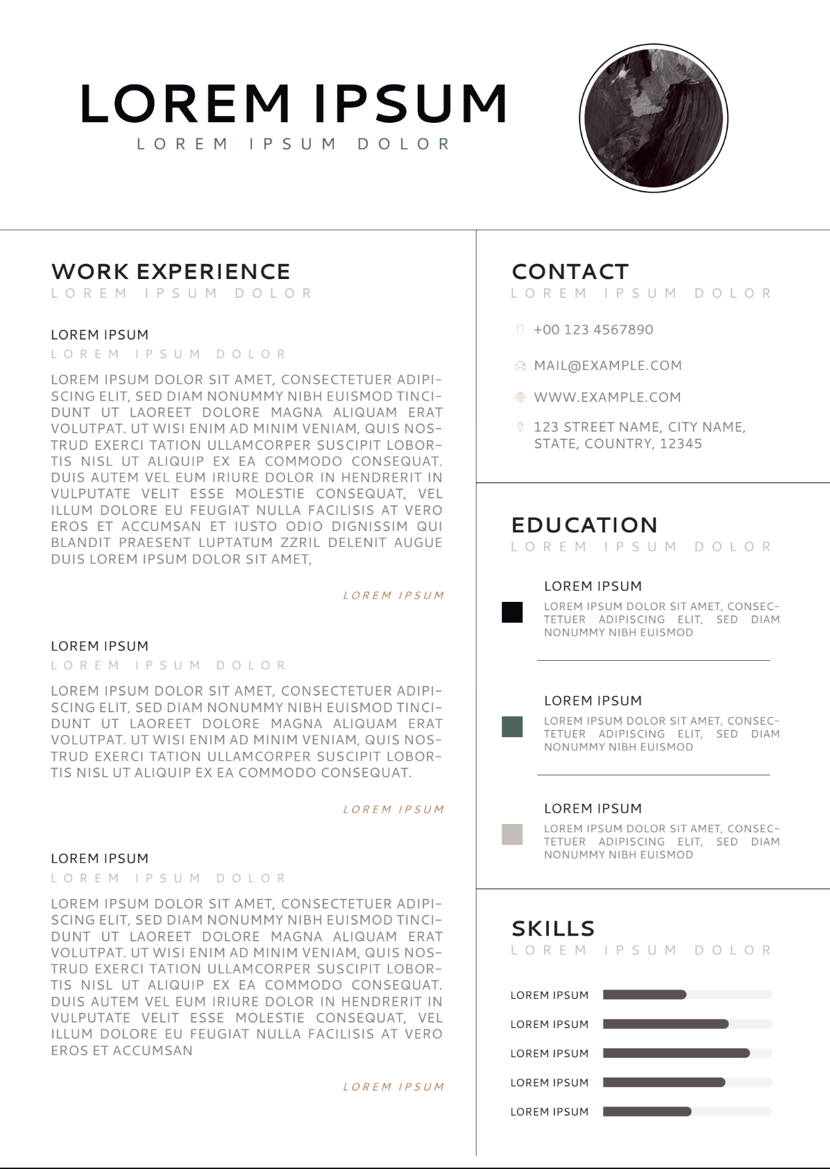 A fun, creative design that works well for artistic roles, especially if you’re including a photo. Skip the photo if you’re not in acting or modeling, and definitely add bullet points under your job experience.