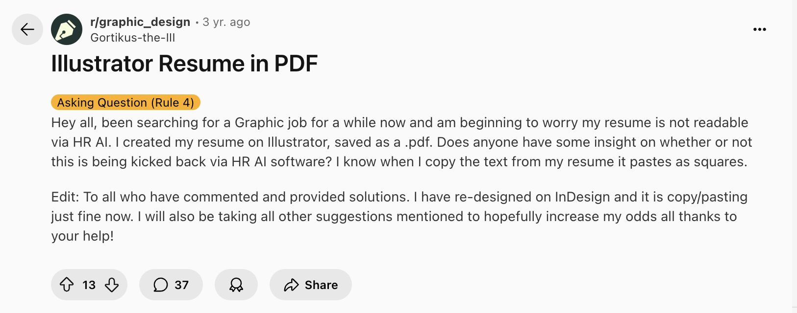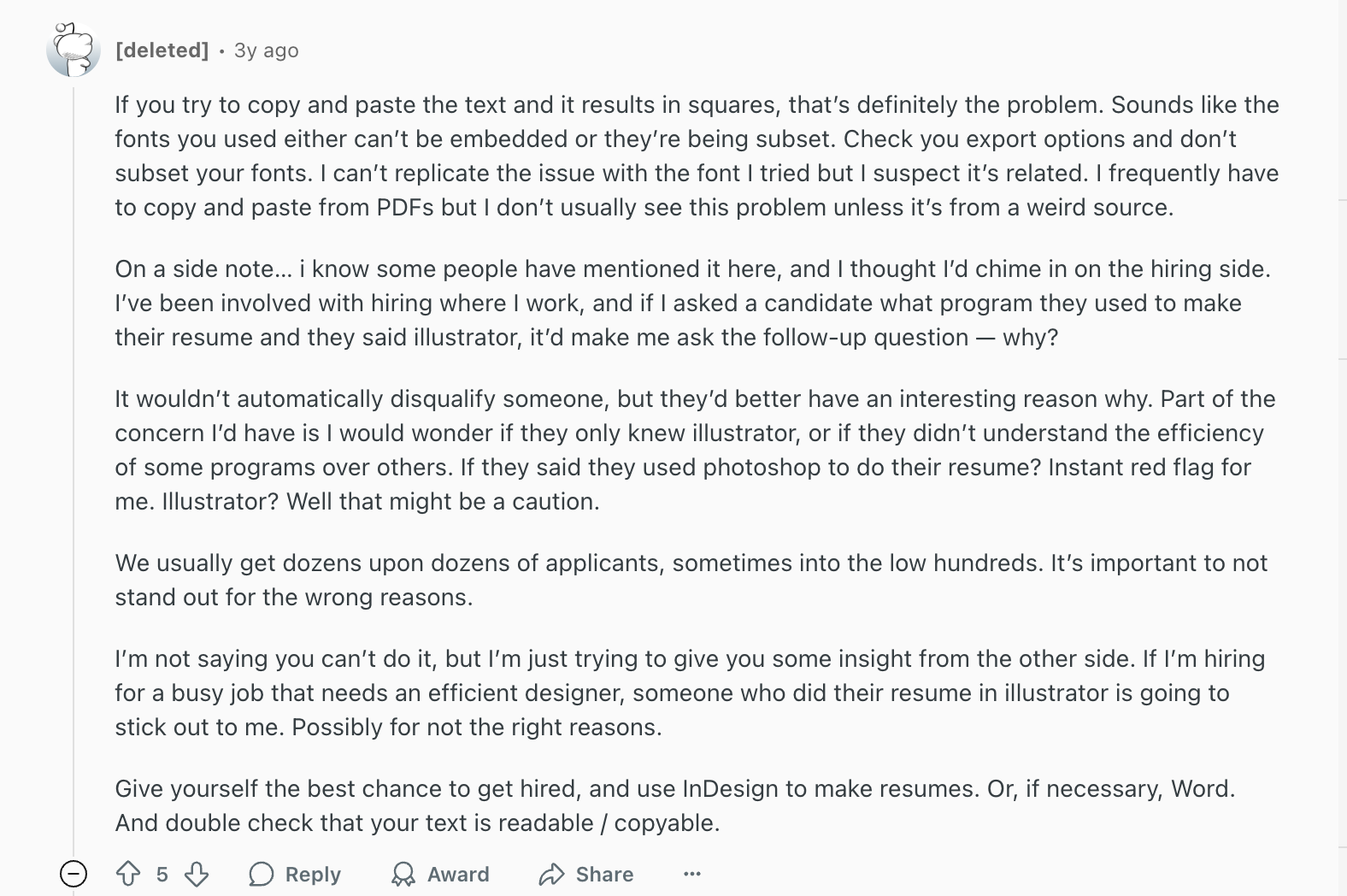 And then you’ve got hiring managers like this one who are flat-out against Illustrator resumes altogether: