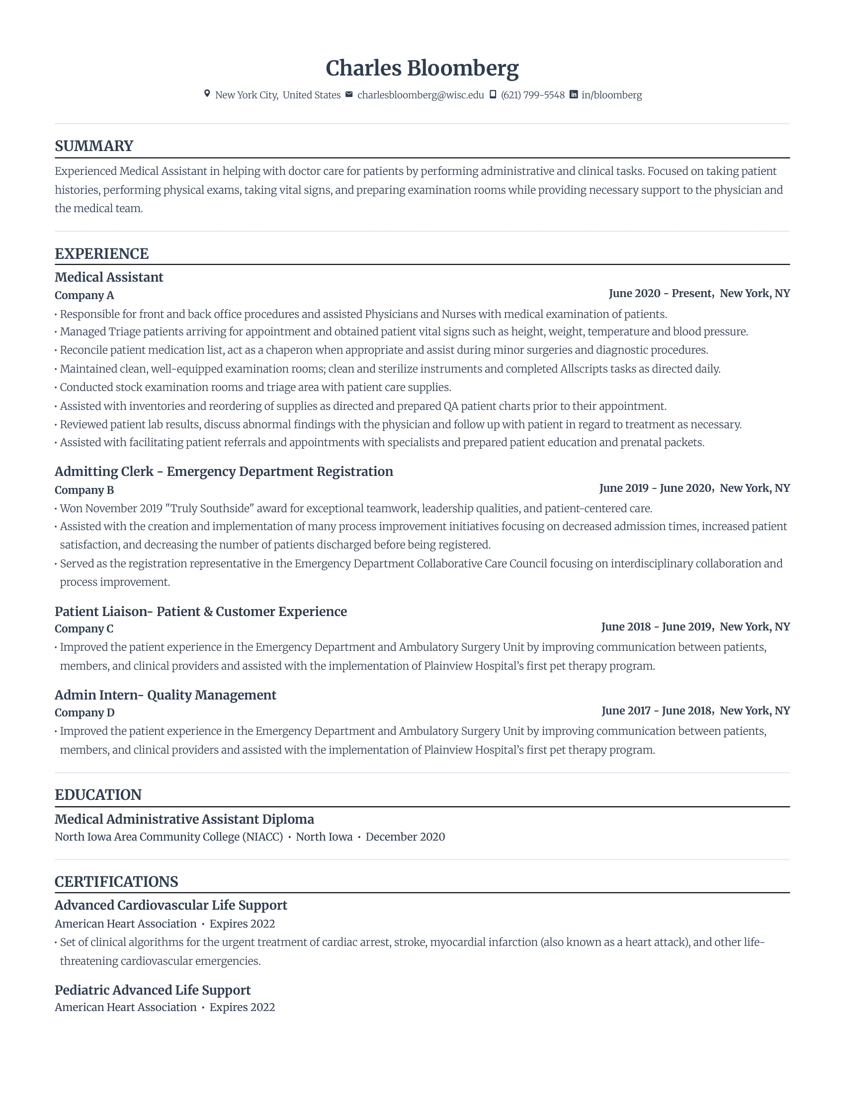 Medical internship resume template