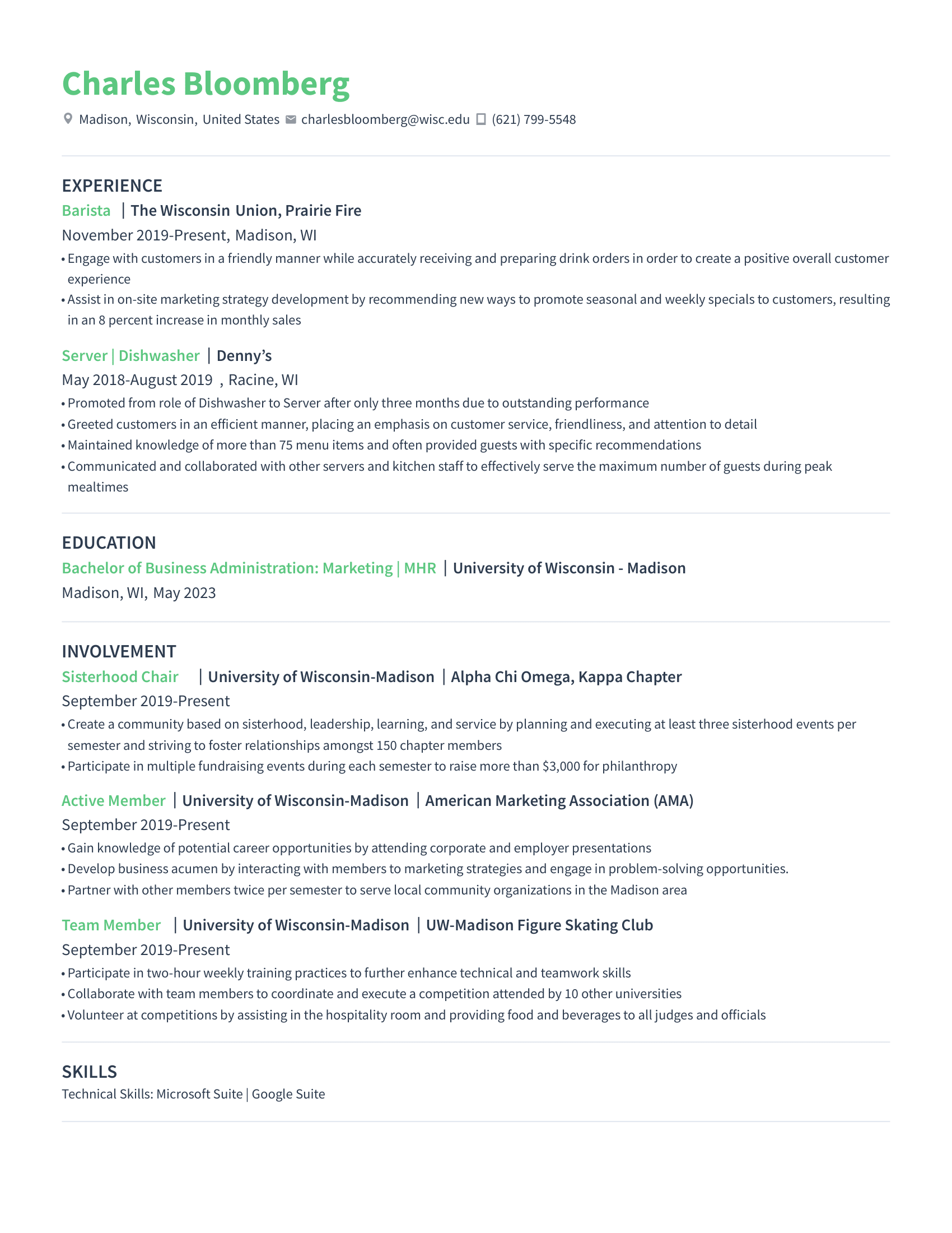 - It prioritizes potential: Internship candidates rarely have extensive professional experience. This format highlights student roles, volunteering, part-time jobs, and projects, which still show responsibility and transferable skills.