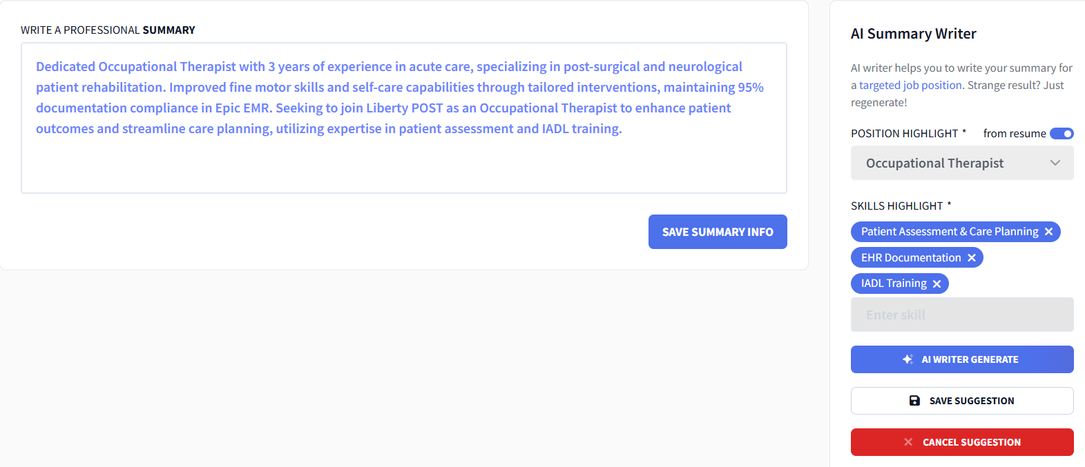 Writing a tailored resume objective or summary can be tricky. The AI Resume Summary Generator makes it quick and painless, so you can focus on applying.