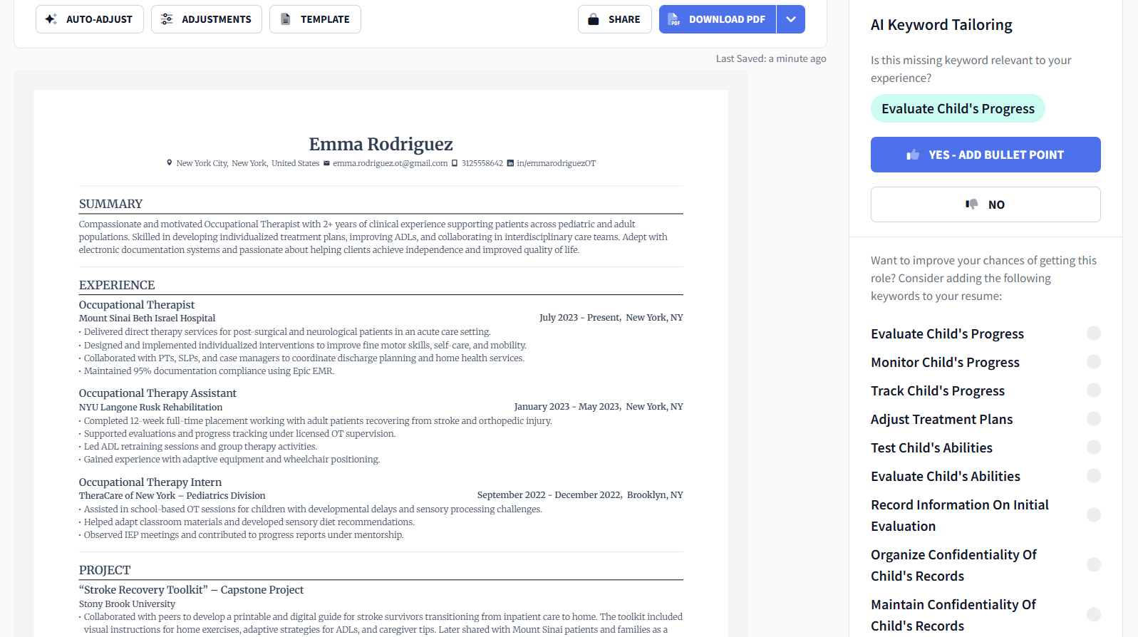 - Build strong summaries and bullet points with AI tools that showcase your impact.