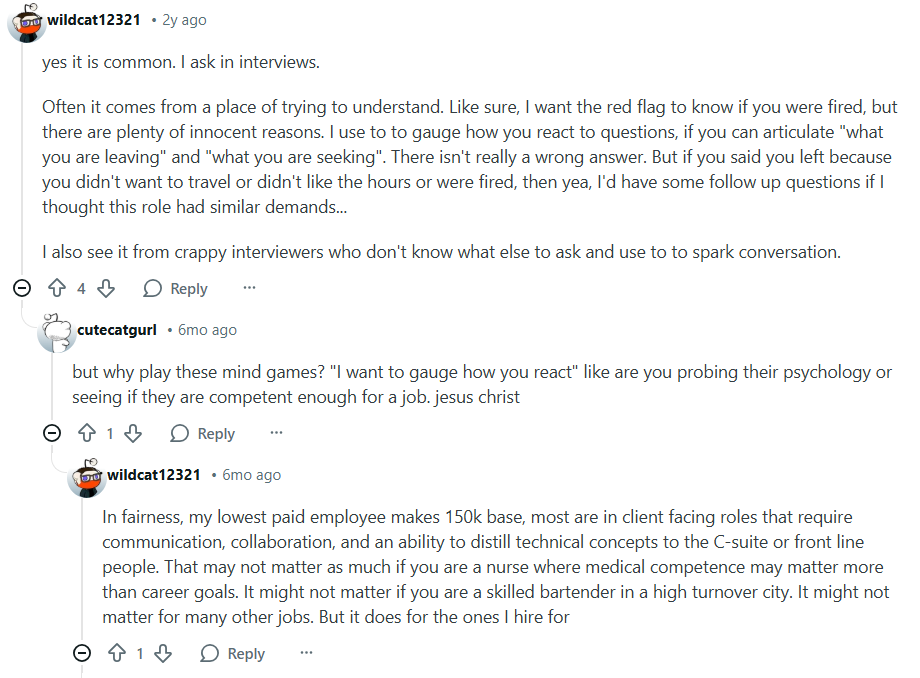 This hiring manager often asks candidates in interviews why they left their previous role:
