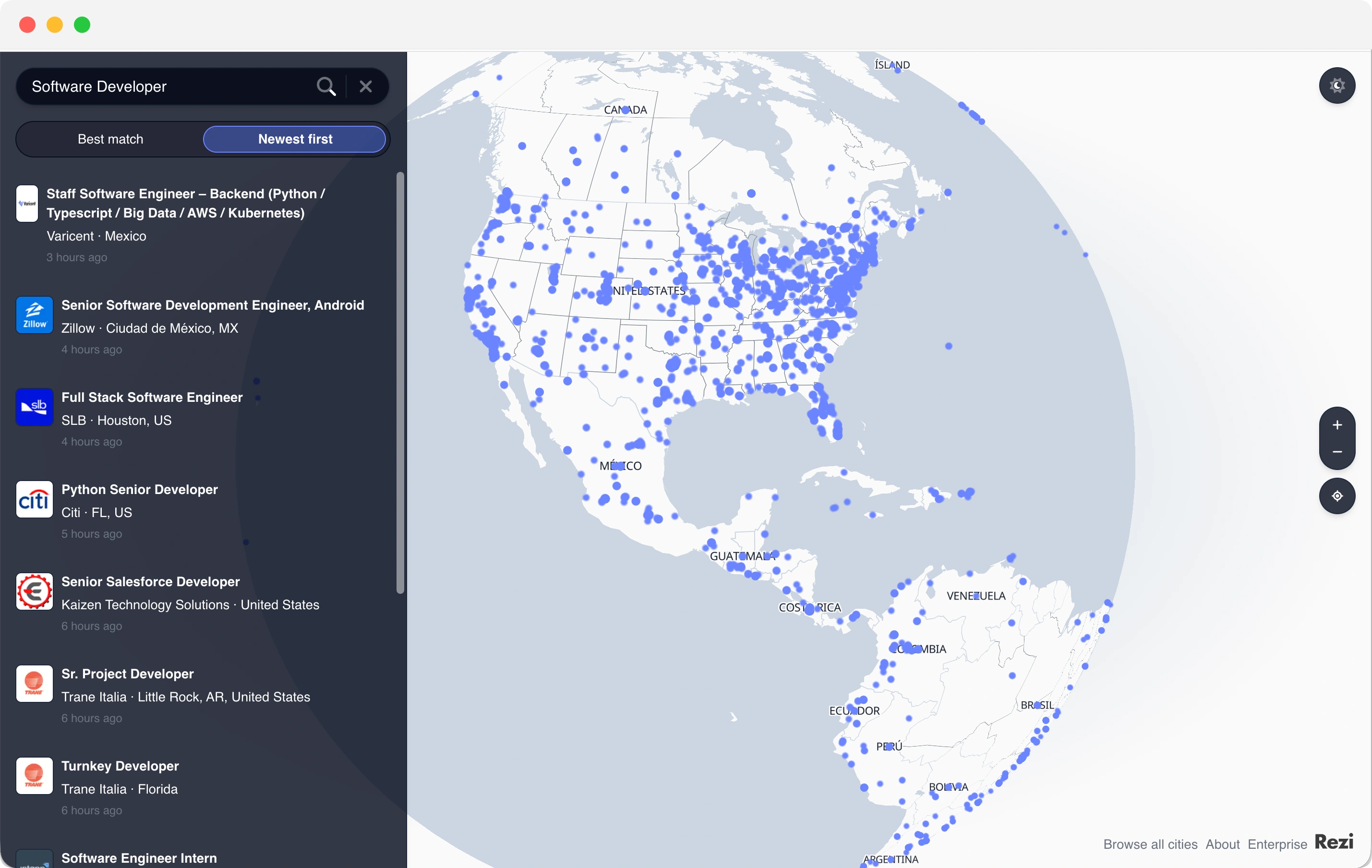 Rezi Map is an interactive map where you can explore over 3 million jobs worldwide. Instead of scrolling through listings, you search visually.