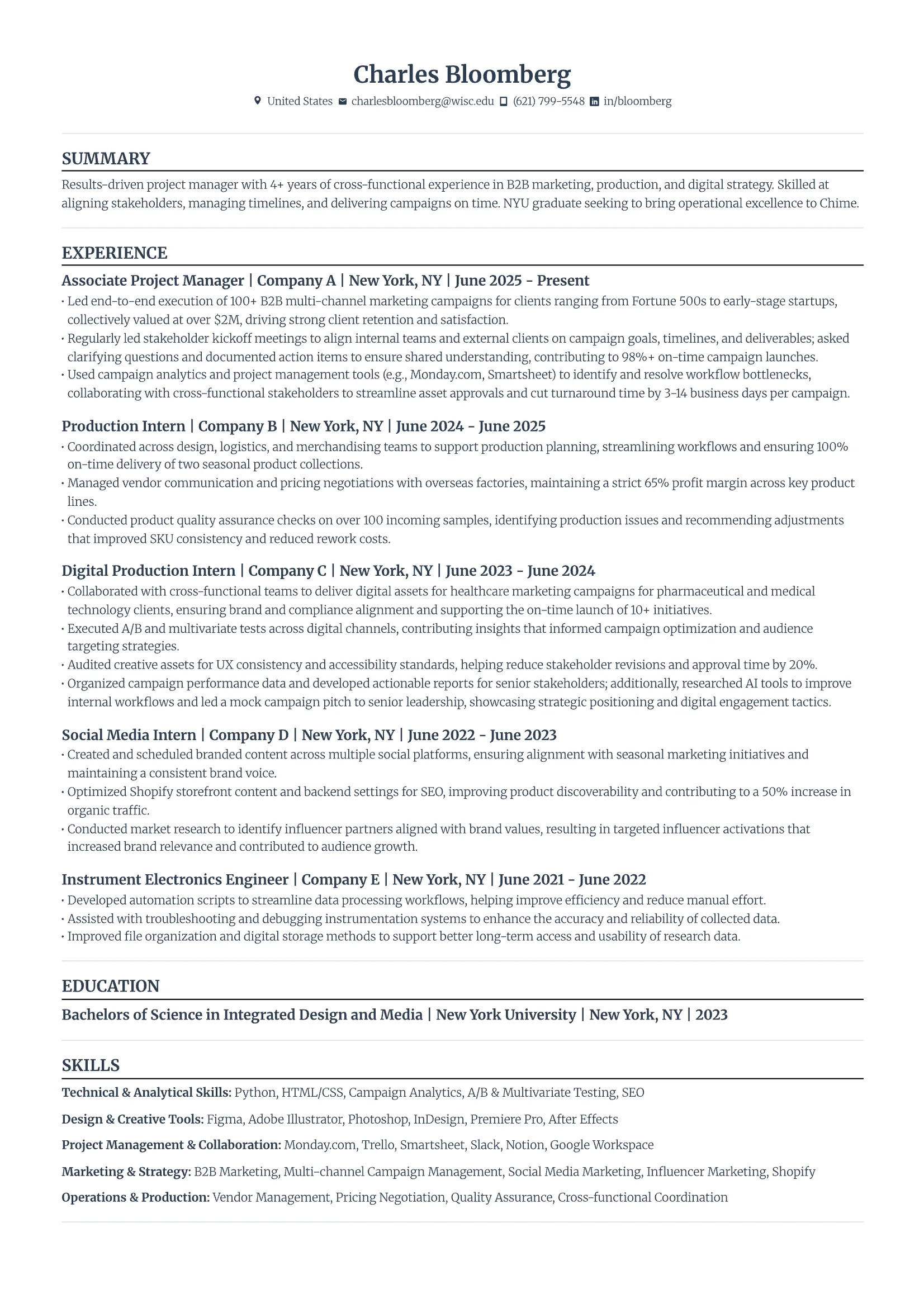 • Edit specific sections: "Make my bullet points more quantitative," "add my new role at Company X," "rewrite my summary for a product management position." Targeted edits without opening the app.