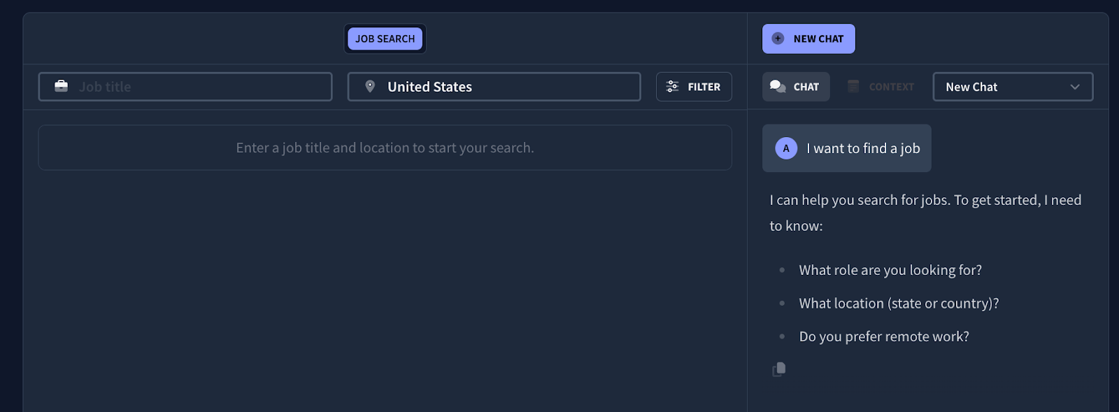 - AI Agent: Uses different language models and trained specifically to assist in resume creation, career advice, and job search.