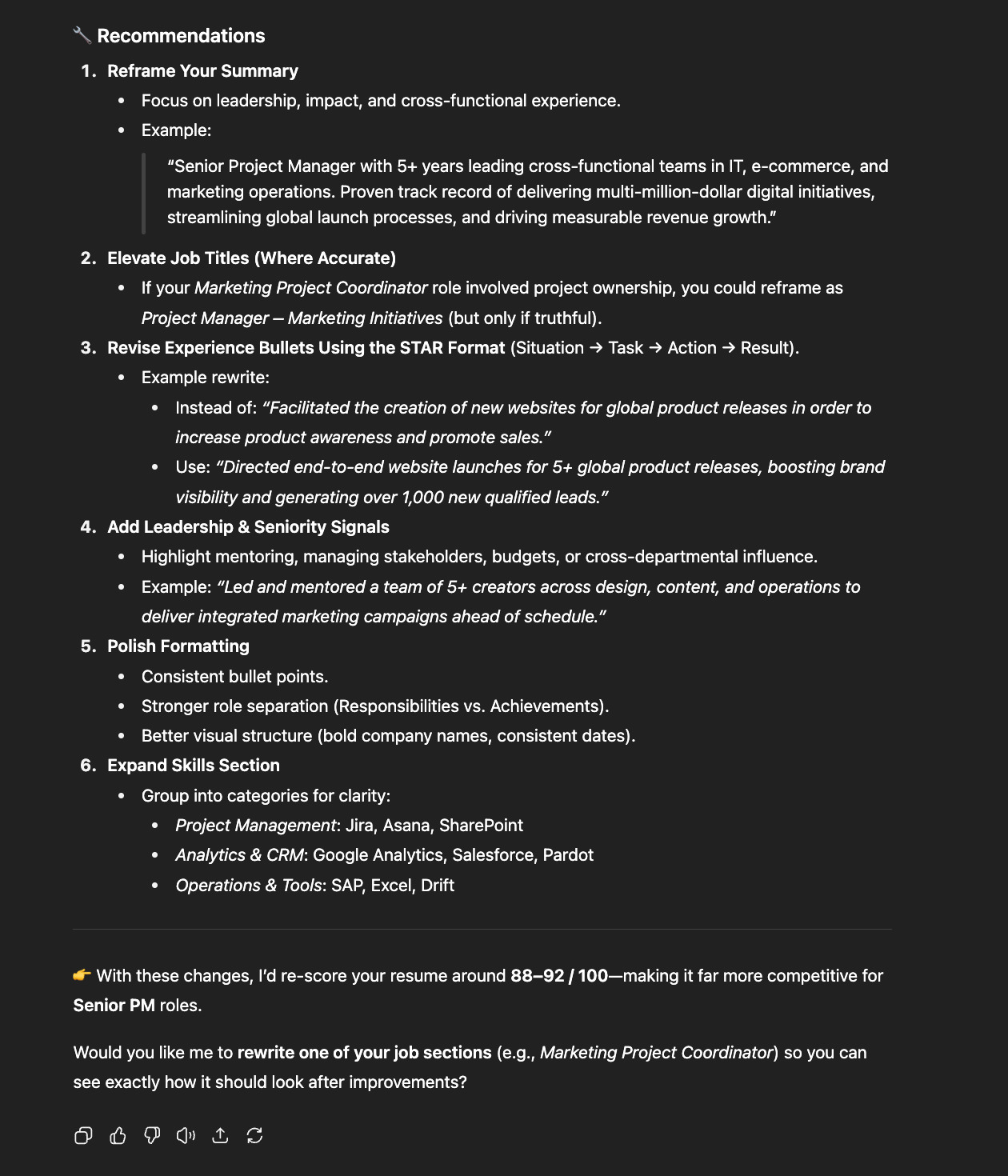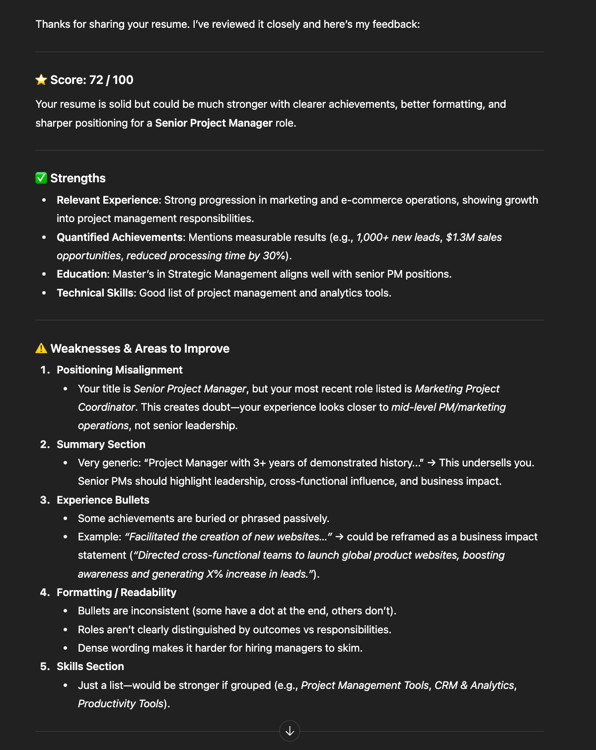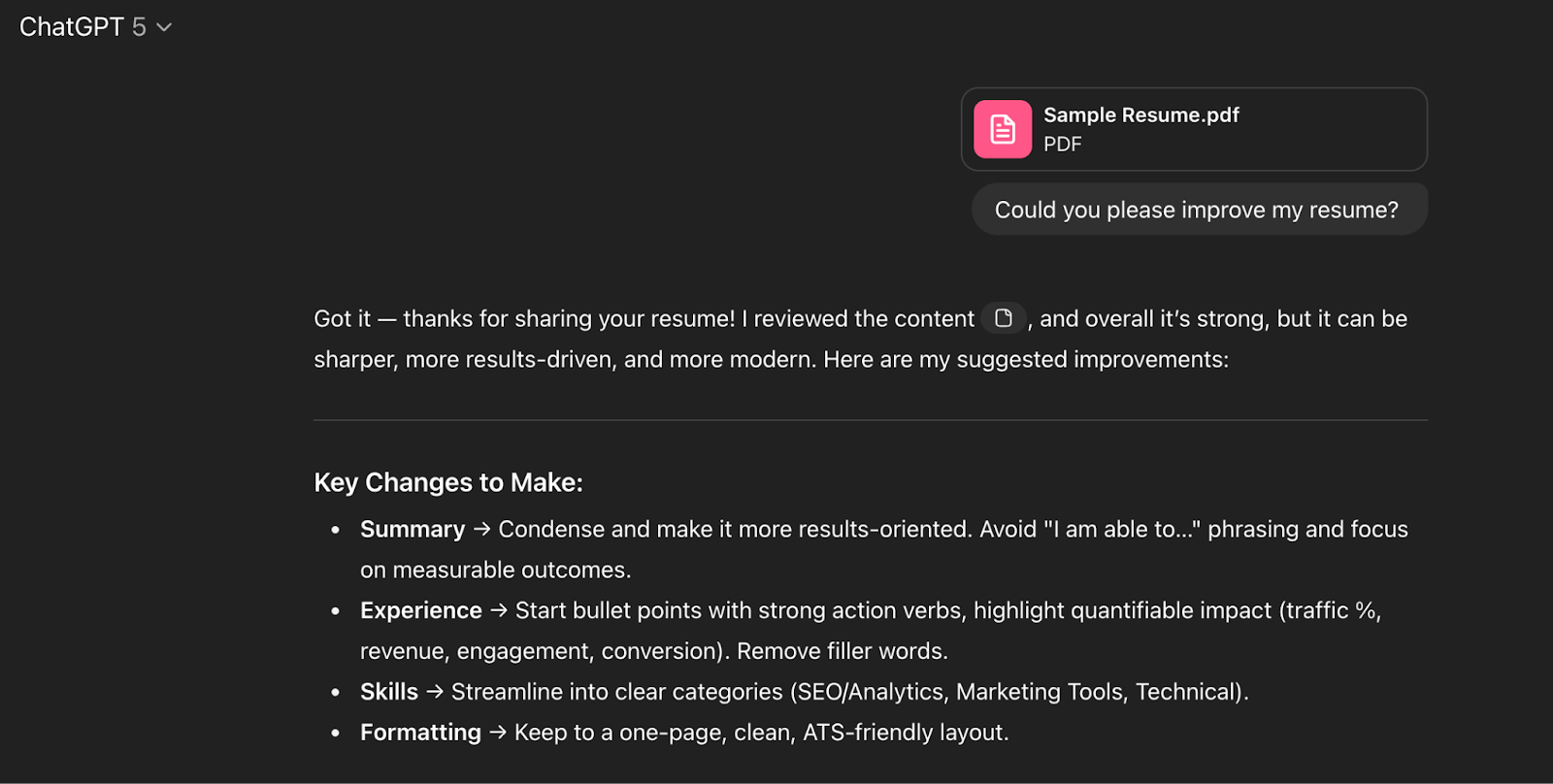 In comparison, here’s the response I got when I asked ChatGPT to improve my resume: