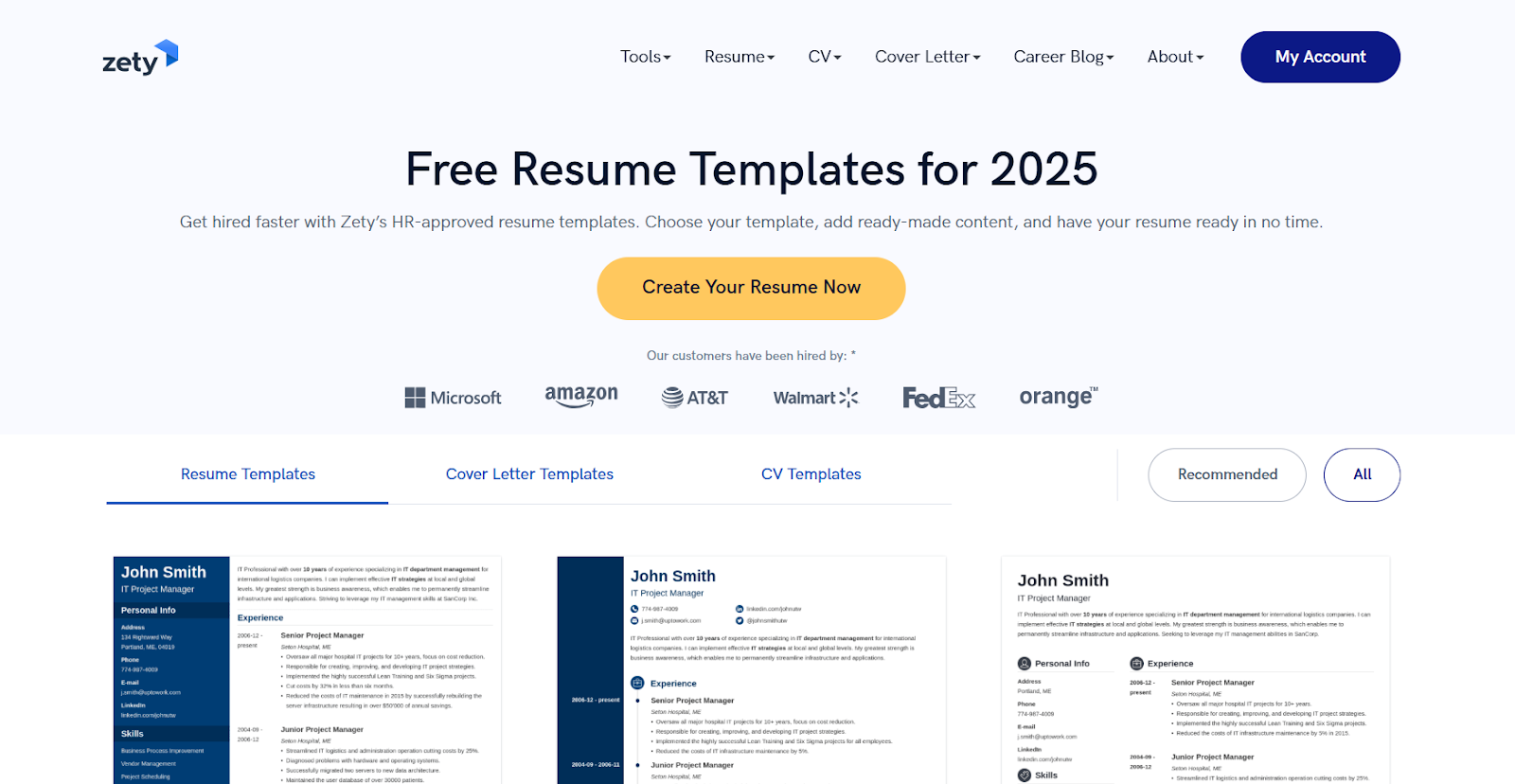 Zety shines when it comes to examples and templates. You can browse pre-written bullet points, summaries, and layouts to quickly put together a polished resume. The downside? It’s not tailored to the specific job and company you’re applying for, and ATS scanners may not always give it the green light.