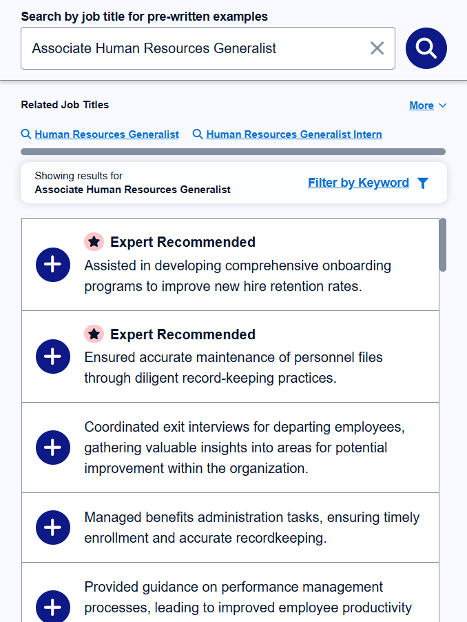 Our AI Bullet Point Writer and Editor help you create keyword-rich, achievement-focused bullets that spotlight your impact.