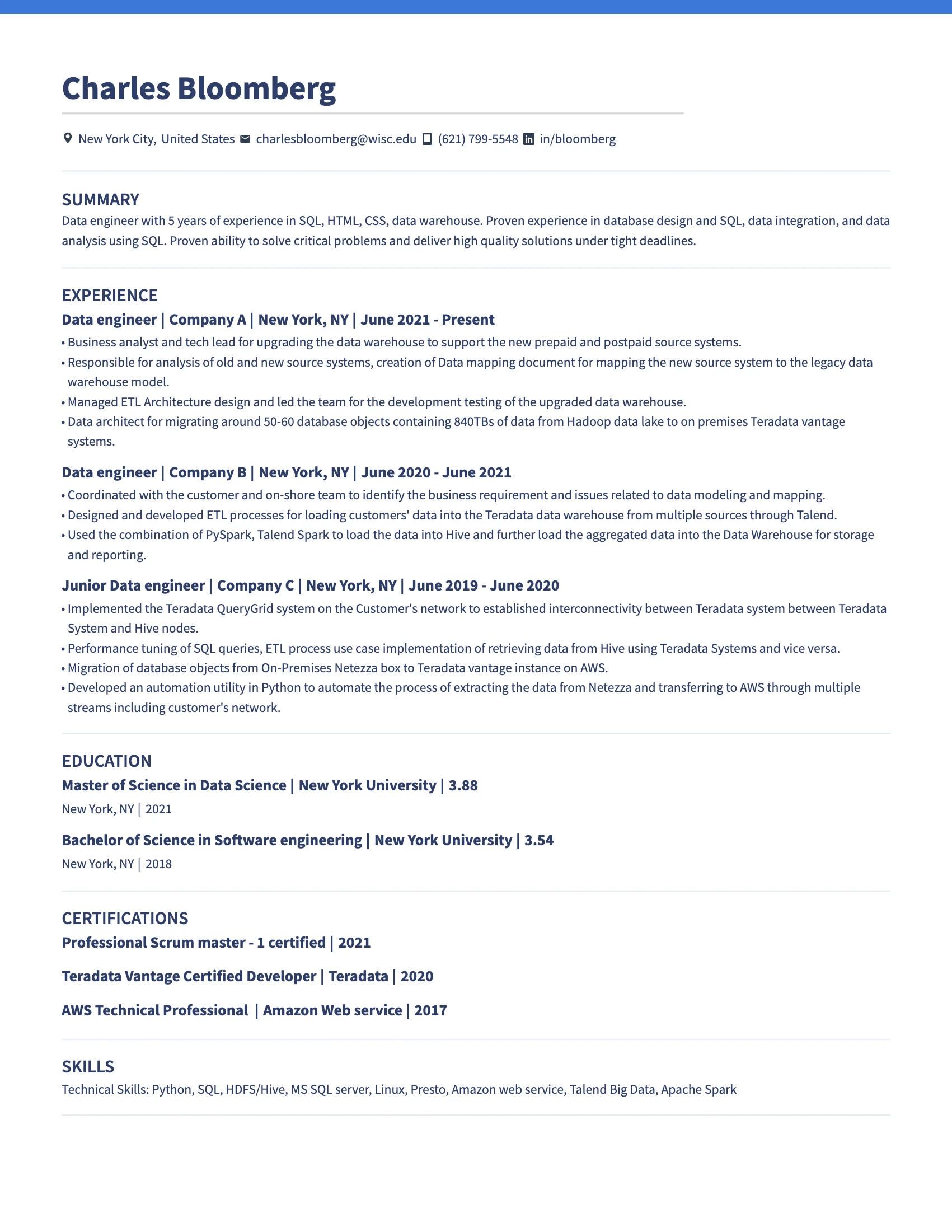 - LinkedIn profile link or portfolio link (keep it updated)