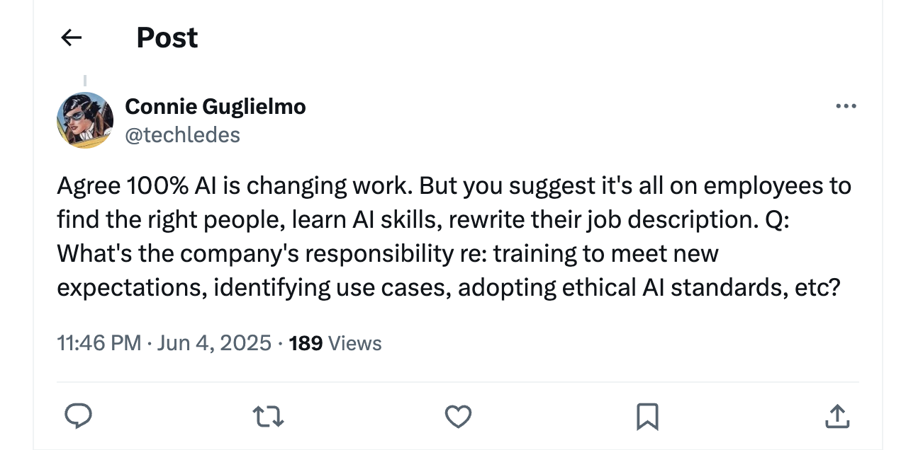 But this moment isn’t just about growing with AI. It’s time to ask deeper questions: What do we bring to the table that AI can’t? How do we grow in ways that tech can’t replicate? Skills like empathy, curiosity, creativity, and leadership aren’t going anywhere.