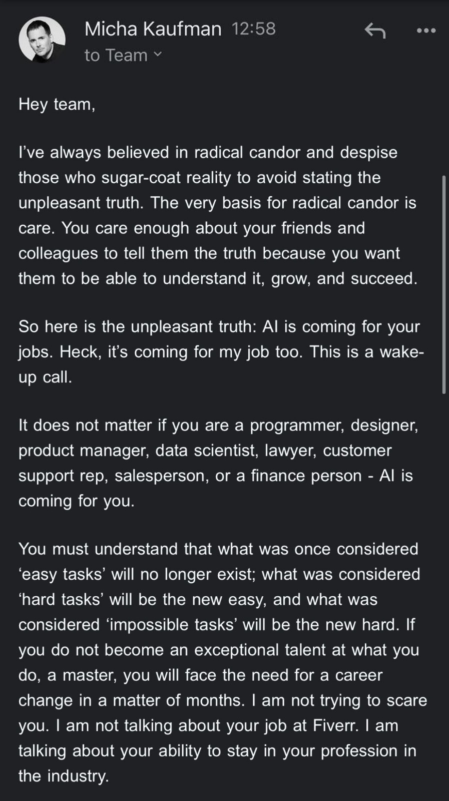 Find out what the Fiverr CEO email reveals about the changing job market, the rise of AI, and what it means for managers, employees, and the future of work.