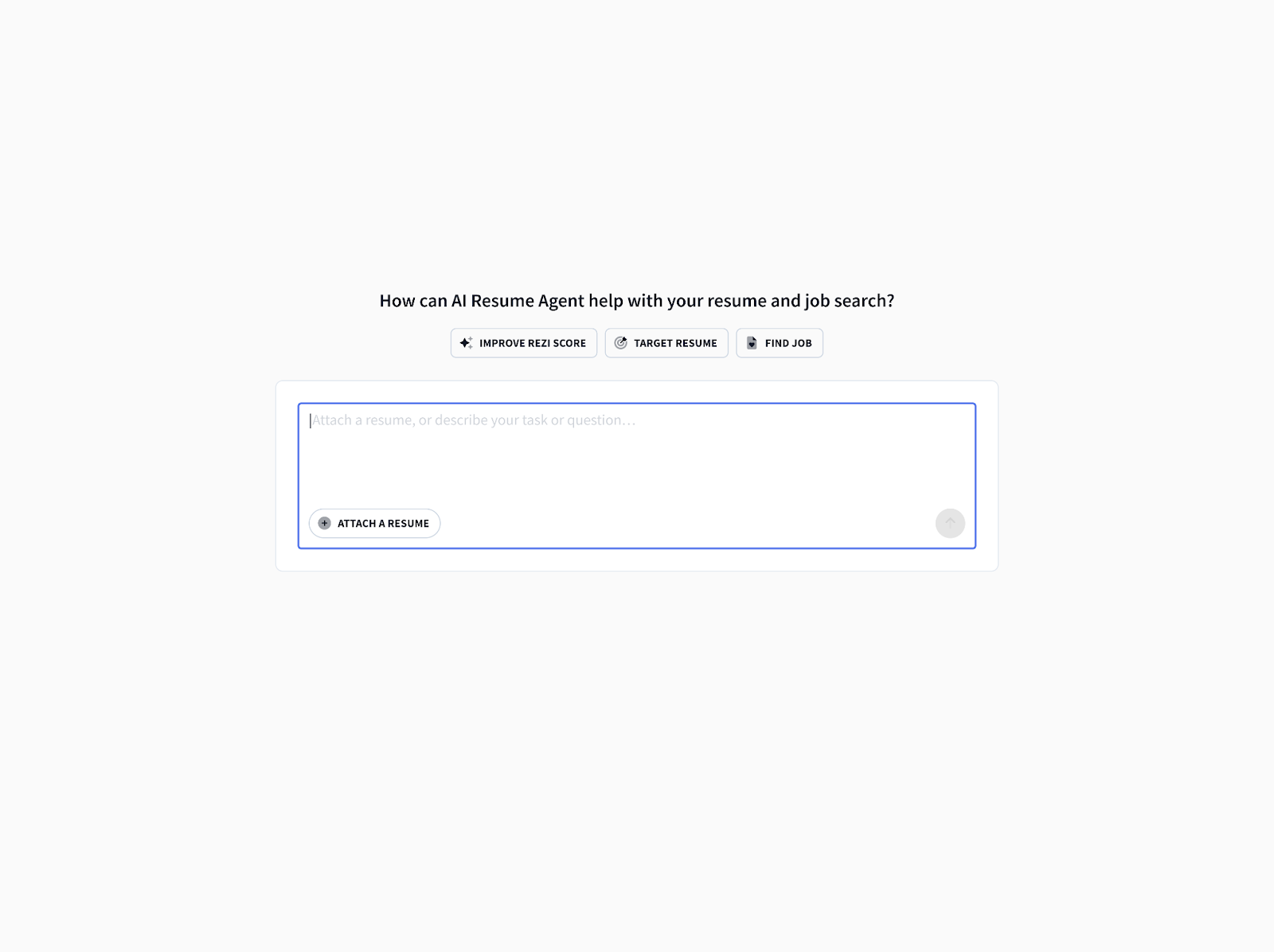 When you land on Rezi AI Resume Agent, you’ll see three buttons: