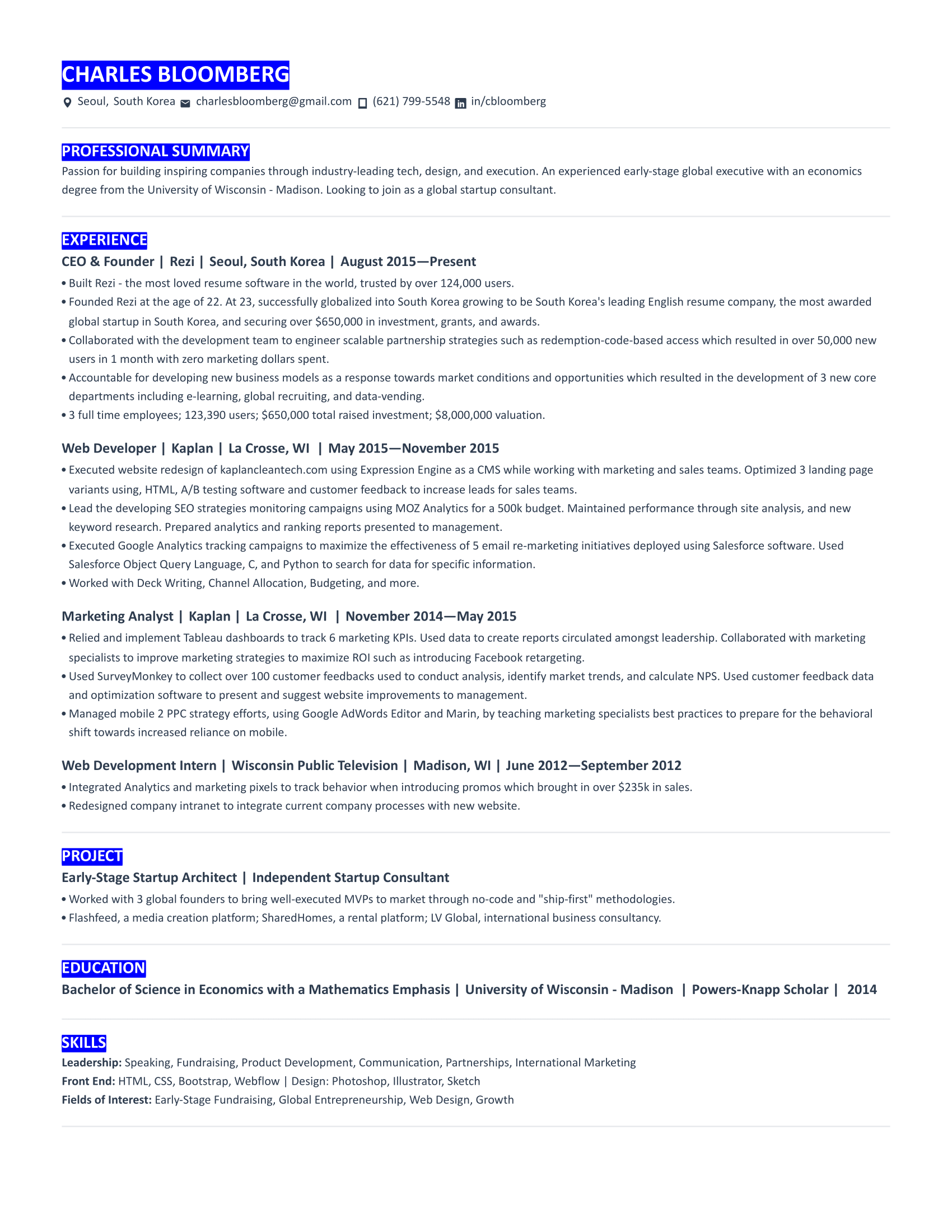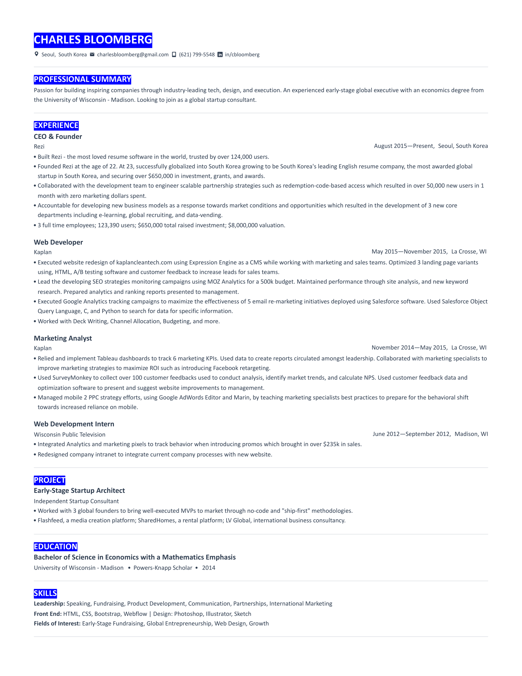 Luke started out with an overdesigned resume that wasn’t getting results. Rezi helped him simplify and improve it: