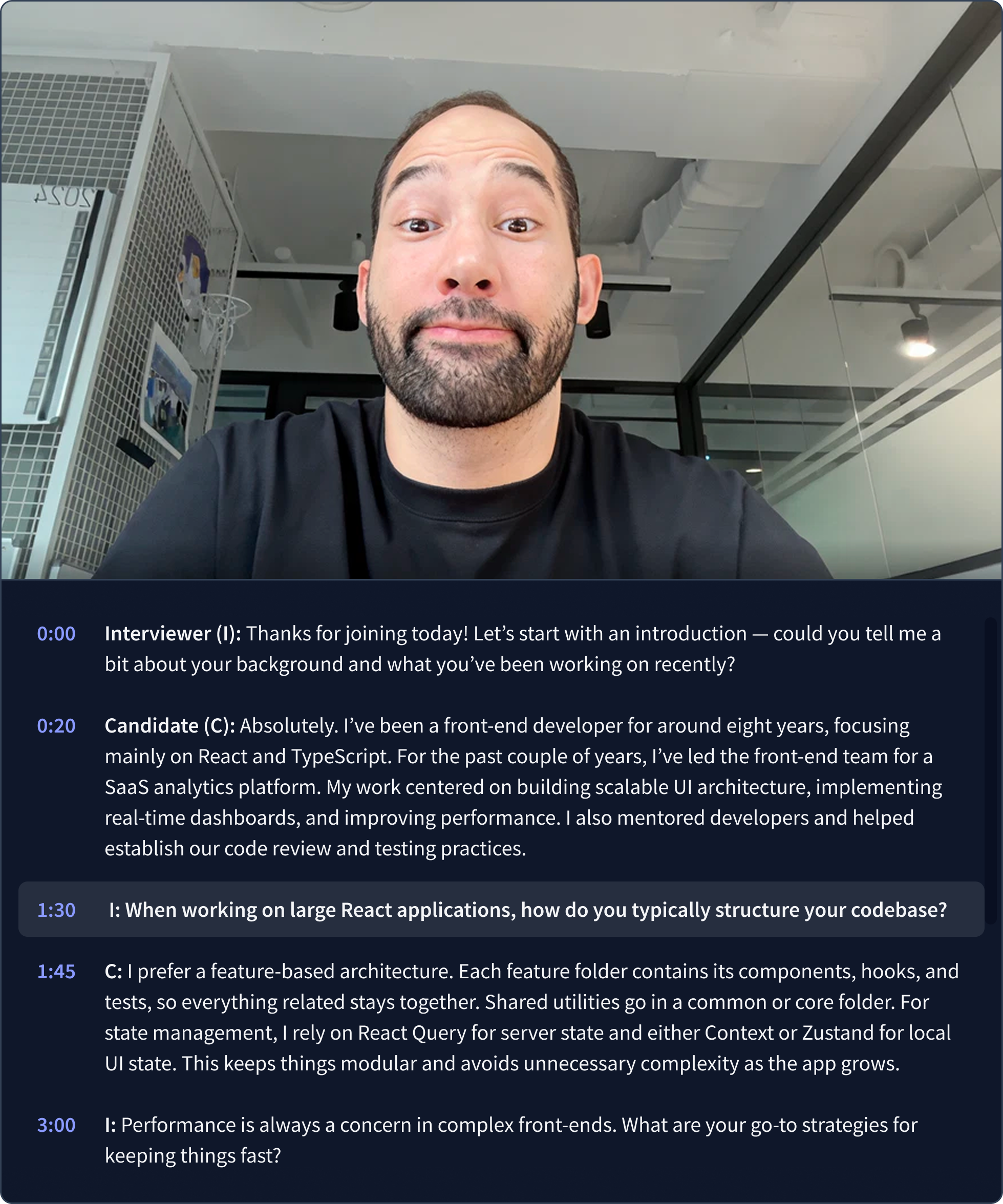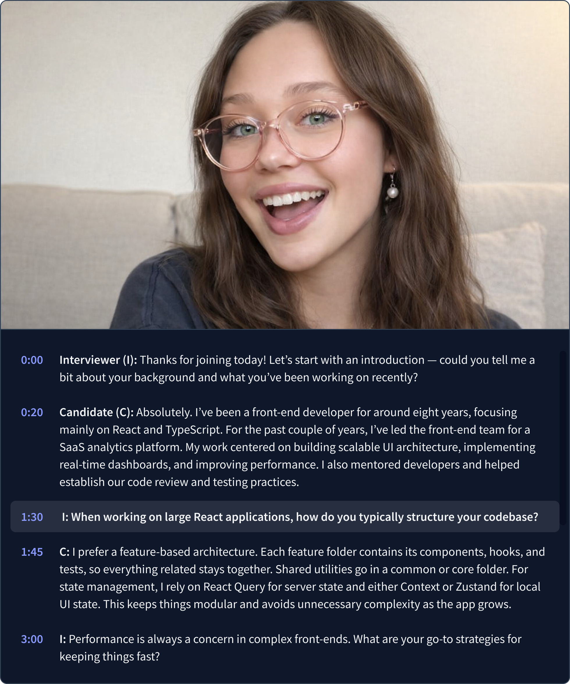 Sharpen your interview question and answer skills with Rezi AI Interview. Job-tailored questions, focused on your resume.